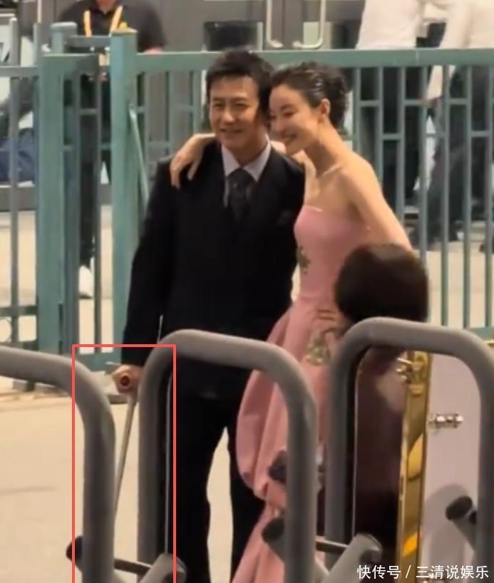 大概是穿着高跟鞋的缘故,倪妮看起来和超哥差不多高,她还把手搭在了超哥的肩膀上,两人一边聊一边走,很放松。让人意外的是,他手里还拿着一个拐杖,应该是打篮球受的伤还没有好全。