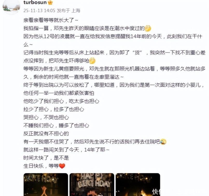 两人非常相爱,娘娘坏等等的时候,他甚至息影个月,从怀孕到生产全程陪同。最近在等等生日的时候,娘娘又写了一篇小作文,感叹当时生孩子的时候,超哥对娘儿俩无微不至的照顾。